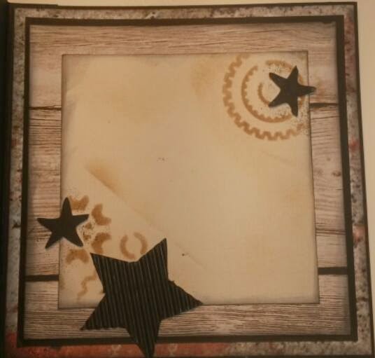 Her hadde jeg til et vanlig kort brukt gamle boksider eller noteark under tagen, men denne gangen rev jeg i stykker en rutetabell fra NSB og svertet dem med brun distress pute. Logoen er også klippet ut derifra. Både taggen og stempelpanelet er satt på lave 3D- puter for mer liv.